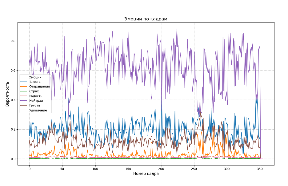 Для распознавания эмоций применяется технология искусственных нейронных сетей. Пример наботы ПАК представлен на рисунке: